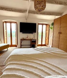 Food & DrinkWine/Champagne, Tea/Coffee maker, Bottle of water, Chocolate/CookiesBathroomFree toiletries, Body soap, Toilet, Bidet, Shower, Private bathroom, Bathtub or shower, Shampoo, Toilet paper, Towels, HairdryerMedia & TechnologyStreaming service (like Netflix), Video games, Radio, iPad, TV, Satellite channels, Flat-screen TVGeneralHardwood or parquet floors, Lockers, Air conditioning, Trash cans, Smoke Alarm, Key access, Private entrance, Heating, Fire extinguisherKitchenRefrigerator, Stovetop, Dishwasher, Oven, Kitchen, Coffee machine, Toaster, Dining table, Cleaning products, Electric kettle, Wine glassesLiving AreaSofa, Desk, Sitting area, Dining areaViewInner courtyard view, Mountain view, City view, ViewBedroomWardrobe or closet, Linens, Alarm clock, Childrens' cribsOutdoorsOutdoor dining areaAccessibilityUpper floors accessible by stairs onlyBuilding CharacteristicsDetachedRoom AmenitiesFold-up bed, Adapter, Socket near the bed, Drying rack for clothing, Sofa bedEntertainment & Family ServicesBoard games/puzzlesInternetGame console - Xbox One |