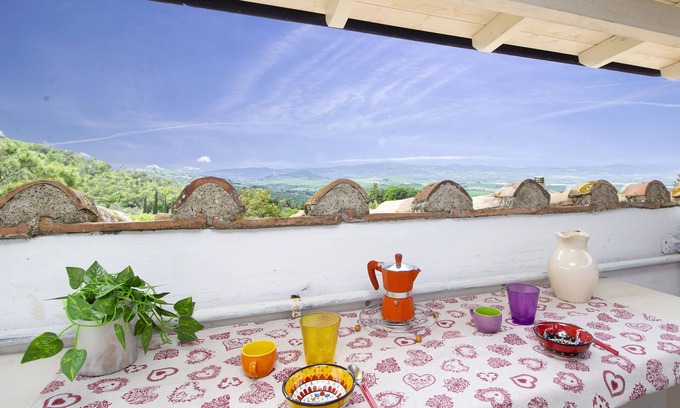 TuscanyWeGo Agency: Casetta de Sodoni is an apartment surrounded by greenery, with a beautiful view of the Tuscan hills and the sea, perfect for a holiday in total relax. It is on 2 levels and consists of a living room 2 double bedrooms, a bathroom with shower, kitchen with equipped balcony and view, garden with BBQ and private parking. WI-FI free