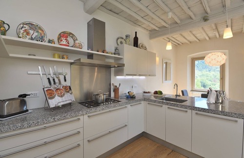 Inside, the house combines traditional Tuscan elements such as terracotta floors and wooden beamed ceilings with a light, welcoming atmosphere and stylish modern furnishings.