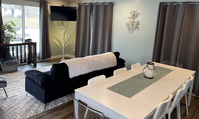 There are 3 full bedrooms with 2 queen beds, 3 twin beds and a Queen Size sofa bed in the walkout basement. Sleep up to 8 people comfortably.
