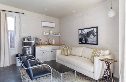 The casita was built using innovative 3D concrete printing and features a thoughtfully designed studio layout with one Queen Bed, Full Bath, and Kitchenette with microwave and refrigerator. You’ll also have WiFi, a full bathtub for soaking, and a stocked Keurig to start your mornings off right.