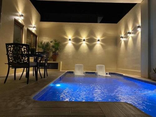 Food & DrinkTea/Coffee makerGeneralIron, Air conditioning, HeatingBathroomTowels, Toilet paper, Hairdryer, Body soap, Private bathroom, ShampooKitchenStovetop, Refrigerator, Microwave, KitchenLiving AreaDeskMedia & TechnologyFlat-screen TVOutdoorsPrivate poolBedroomLinens |