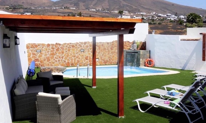 Casa Joli is located in the Southeast of the island. From the house we can see our neighboring island of Fuerteventura. To the North we have the Geria vinicula area of the island from which our famous Malvasia wine is obtained in the world. To the west the mountain of Tinasoria where paragliding and hang gliding is practiced and has beautiful views of the Timanfaya National Park.