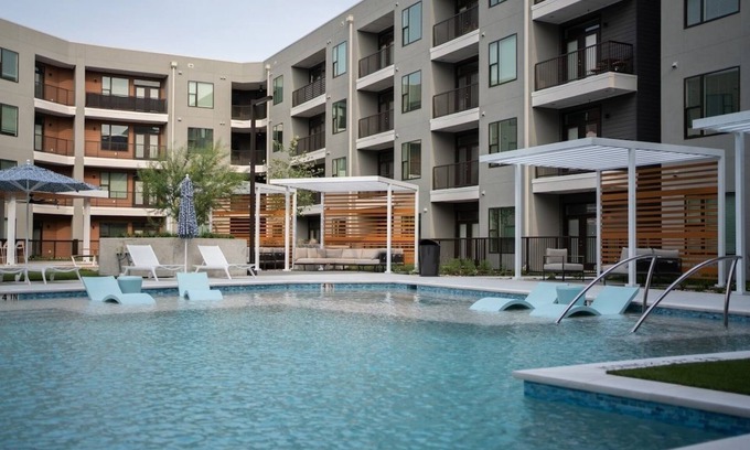 ☁️ Wake up in a sunlit space and head downstairs for coffee at the residents’ bar before hitting the two-story gym or heading out to explore Austin’s vibrant scene. After a day of fun or work, come home to unwind by the resort-style pool, curl up in the swing chair with a drink, or grill dinner in the outdoor courtyard.