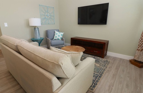 The open great room is adorned with beautiful decor and artwork. Your condo provides ample living space that features comfy seating and a flat screen HDTV. Plenty of natural light flows in from the windows, creating a light and airy beach-side escape.