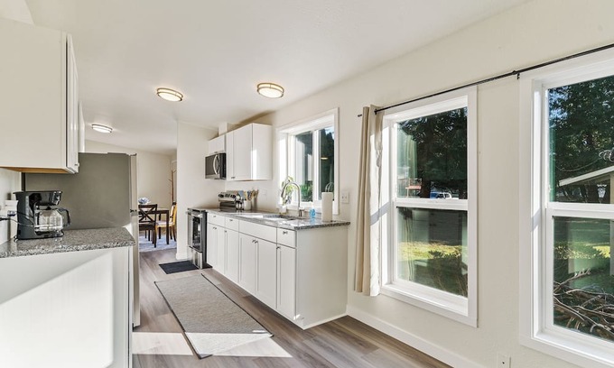 Your home away from home in Camano with 3 brilliant bedrooms featuring queen beds. This tranquil house offers heating, a washing machine, and WiFi for your convenience. With 2 bathrooms, you'll have all the space you need to unwind after a day of exploring. We'll be available to answer any questions while you stay at our place.