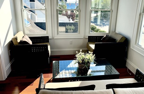 It's a happy place! A joyful feeling and sense of well being emanates from abundant natural light throughout the home through five mini-sunrooms and a full width wall of windows on each floor. High ceilings, amazing flow from large pocket and French doors.