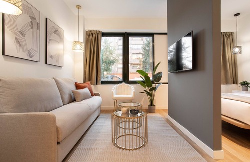 EnvironmentThe Catalina apartments are located in a modern building in the Pacifico neighbourhood, next to a pleasant open square facing south. It is a residential area that stands out for its peaceful atmosphere, its growing architecture and residential projects, and its varied commercial offering of restaurants, services and shops.Just 3 minutes walk from the Pacífico metro, which directly connects to the city centre through line 1, this area also offers optimal public transport connectivity. At the same time, the proximity to Atocha station and the Méndez Álvaro South Bus Station have boosted its development, turning it into an increasingly dynamic area.Moreover, Pacífico is located near the M30, one of the main ring roads of Madrid, a perfect location for people who come for work due to easy access to other key points of the city such as Ifema.StudyThis modern studio with capacity for four people is the perfect space for those looking for comfort and style in a modern environment with an open and efficient layout, the main area combines living room, kitchen and rest area in a single environment.The American kitchen, equipped with state-of-the-art appliances, is perfect for those who enjoy cooking without giving up comfort and design. The living room, bright and cozy, adapts to both relaxation moments and daily activities. It features a smart TV and a double sofa bed.The rest area includes a double bed, ensuring a cosy place to rest.The bathroom, with a modern shower, perfectly complements this apartment, providing an experience of comfort and functionality.The accommodation has WiFi and washing machine.The heating to air conditioning change in the apartment boiler will be carried out at the end of May, and in turn, the air conditioning to heating change will be carried out in November, in accordance with the protocols established by the community.To take into accountAll bookings made on the same day of arrival may have a delivery time after 3:00 PM, depending on the time needed for cleaning the apartment. We appreciate your understanding and recommend that you contact us to confirm the exact check-in time.The cot is subject to availability. Please notify at the latest 5 days in advanceRespect: For good coexistence and respect for neighbours and residents, this apartment has a 24-hour noise monitoring system. Guests must comply with the established rest periods at all times.The check-in process involves a mandatory online registration for each guest, prior to accessing the apartment. It will be essential to have a mobile device and internet on the phone to access the apartment.Please contact our team 48 hours before arrival and carefully follow the instructions made available to you at all times. MIT House is not responsible for any delay in apartment entry for not having carried out said prior process.