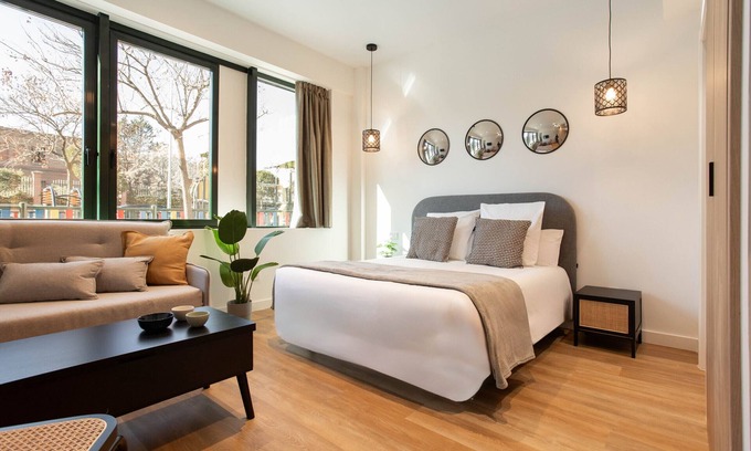 EnvironmentThe Catalina apartments are located in a modern building in the Pacifico neighbourhood, next to a pleasant open square facing south. It is a residential area that stands out for its peaceful atmosphere, its growing architecture and residential projects, and its varied commercial offering of restaurants, services and shops.Just 3 minutes walk from the Pacífico metro, which directly connects to the city centre through line 1, this area also offers optimal public transport connectivity. At the same time, the proximity to Atocha station and the Méndez Álvaro South Bus Station have boosted its development, turning it into an increasingly dynamic area.Moreover, Pacífico is located near the M30, one of the main ring roads of Madrid, a perfect location for people who come for work due to easy access to other key points of the city such as Ifema.StudyThis modern studio with capacity for four guests is located on the ground floor and is the perfect space for those seeking comfort and style in a modern environment with an open and efficient layout, the main area combines living room, kitchen and rest area in a single space.The American kitchen, equipped with state-of-the-art appliances, is perfect for those who enjoy cooking without giving up comfort and design. The living room, bright and cosy, adapts to both relaxation moments and daily activities. It features a smart TV and a double sofa bed.The rest area includes a double bed, ensuring a cosy place to rest.The bathroom, with a modern shower, perfectly complements this apartment, providing an experience of comfort and functionality.The studio has wifi and washing machine.The heating to air conditioning change in the apartment boiler will be carried out at the end of May, and in turn, the air conditioning to heating change will be carried out in November, in accordance with the protocols established by the community.To take into accountAll bookings made on the same day of arrival may have a delivery time after 3:00 PM, depending on the time needed for cleaning the apartment. We appreciate your understanding and recommend that you contact us to confirm the exact check-in time.The cot is subject to availability. Please notify at the latest 5 days in advanceRespect: For good coexistence and respect for neighbours and residents, this apartment has a 24-hour noise monitoring system. Guests must comply with the established rest periods at all times.The check-in process involves a mandatory online registration for each guest, prior to accessing the apartment. It will be essential to have a mobile device and internet on the phone to access the apartment.Please contact our team 48 hours before arrival and carefully follow the instructions made available to you at all times. MIT House is not responsible for any delay in apartment entry for not having carried out said prior process.