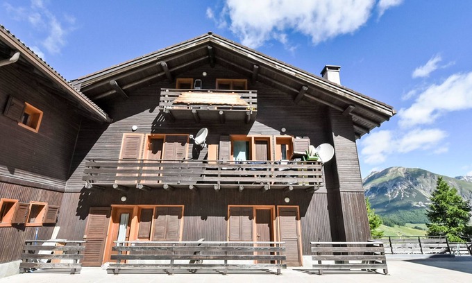 Small, comfortable apartment house "Caterina View", 1'816 m a.s.l 3 storeys. 1.5 km from the centre of Livigno, in a quiet position on a slope, residential area (villas), along the wooded area, 250 m from the skiing area. In the house: storage room for bicycles, sun terrace, storage room for skis, central heating system. In Winter: please take snow chains. Roofed, parking at the house, public parking 100 m on the road. Supermarket 500 m, restaurant 200 m, bar, café, indoor swimming pool 1 km, thermal baths "Livigno Terme" 1 km. Chair lift 250 m, ski rental, ski school 500 m. Please note: car recommended. Free ski bus service to the ski region 100 mt. In case of good snow conditions, the house is accessible on skis.
