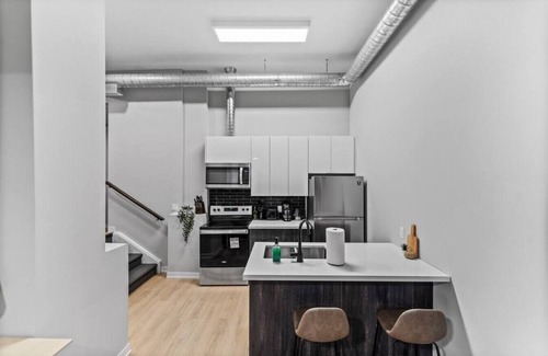 Experience this brand new boutique loft designed with functionality, style, and comfort in mind. This 2-story cathedral inspired loft with high vaulted ceilings, 2 queen beds, fully equipped kitchen and bathroom is perfect for short and long-term stays.