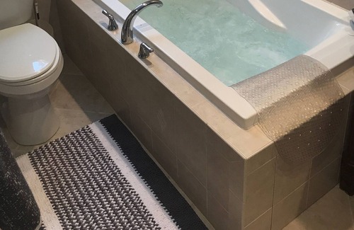 The house is 3 levels, with bedrooms on the entry level, living room, dining, kitchen and main decks up stairs, and built out basement, 2nd kitchen, and lower deck downstairs. The Master has a king size bed, the 2 guest rooms are both queen, the 2 sleeper sofas are queen, and there is a queen air mattress. There is also an additional sofa for sleeping. All mattresses are new gel memory foam mattresses, and all mattresses and pillows are in protective cover pads for extra sanitation and comfort! The fully equipped kitchen has a full set of pots and pans, dishes for 12, glassware and silverware - you have full range to our kitchen equipment! There are 3.5 bathrooms in the house, with full bathrooms on the bedroom and basement level and a half bath on the top floor with living room, dining and kitchen. All bathrooms are fully stocked with towels and all essentials.
