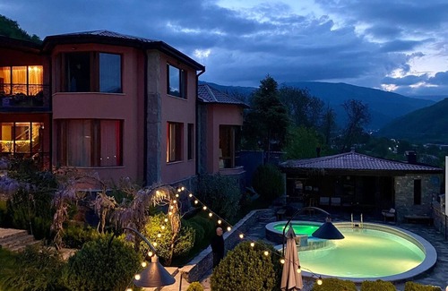 Our villa is located 60 kilometers north of the capital in the direction of the Caucasus Mountains at 900 meters above sea level where the temperature difference is 5-10 degrees Celsius. Oxygen concentration in the air is high due to the mountain forest reservoir and the river Aragvi. We have a terrace garden / park with 100 year old plants with beautiful views of the reservoir and mountains, the architectural ensemble of Ananuri Fortress, and the shore of the reservoir. Our sauna / park has a Russian sauna, outdoor pool, lounge bar and various seating areas. The facility is technically maintained with central hot water and heating. We have been working in the field of services for years and have held many of the best events: weddings, school prom nights, corporate evenings, trainings, master classes, birthdays, exhibitions, shootings.