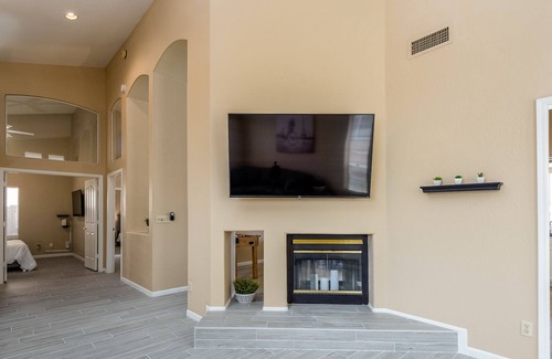Casa Caliente is a 3 bedroom, 2 full bath single family 1 story home with no stairs. Located in Cave Creek, close to restaurants, grocery, shopping, golf, hiking, etc. Once you enter you will find a large family room, sectional couch and TV. The kitchen area offers a dining table and Foosball table with another TV. The master bedroom has a King bed w/ TV and attached bath with walk in shower. The 2nd guest bedroom offers another King bed and TV. The 3rd guest room has a Queen bed and TV. The 2nd bathroom is a tub/shower combo.