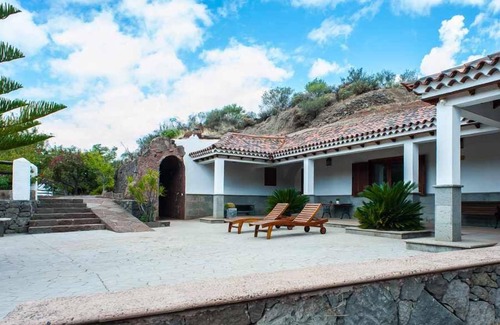 It is a large house built in the mountain Montaña del Toril. Although it is only five minutes away from Artenara, it is in an isolated spot on the mountain. Ideal for families. It has two double bedrooms (each with two single beds), two bathrooms with a shower, two living rooms and a kitchen-dining room. It has a private car park, fruit trees, a garden and a roofed area with a barbecue and a wood-burning stove. Its large terrace invites you to enjoy a peaceful environment where only nature can be heard. As this is a cave house, the temperature inside is the same all year around, 18ºC. This is cosy for guests in winter and refreshing in summer when the temperature outside is higher.