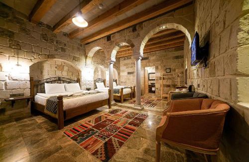 Located in Göreme, 2.6 miles from Uchisar Castle, Caverna Hotel Premium Caves has accommodations with a garden, free private parking, a shared lounge and a terrace. The property is around 4.4 miles from Zelve Open Air Museum, 5.6 miles from Nikolos Monastery and 5.9 miles from Urgup Museum. The property provides a 24-hour front desk, airport transportation, a concierge service and free WiFi. Complete with a private bathroom equipped with a shower and free toiletries, the rooms at the hotel have a flat-screen TV and air conditioning, and some rooms include a seating area. All guest rooms will provide guests with a closet and an electric tea pot. Breakfast is available each morning, and includes vegetarian, vegan and halal options. At Caverna Hotel Premium Caves you'll find a restaurant serving American cuisine. Vegetarian, halal and vegan options can also be requested. The area is popular for skiing and cycling, and bike rental is available at the accommodation. Özkonak Underground City is 15 miles from Caverna Hotel Premium Caves, while Tatlarin Underground City is 22 miles from the property. Nevşehir Kapadokya Airport is 24 miles away.
