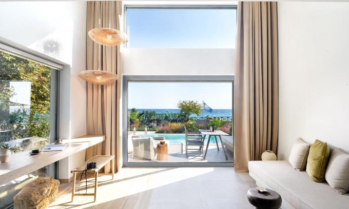 Just a few steps from Possidi East Beach and 1.1 miles from Possidi Beach, Cavo Delea Villas & Suites features accommodations in Possidi, with a garden. This beachfront property offers access to a balcony, free private parking, and free Wifi. The apartment provides an infinity pool, hot tub, and an elevator. Accommodations for disabled guests are also available. The apartment complex will provide guests with air-conditioned units with a desk, a coffee machine, a fridge, a safety deposit box, a flat-screen TV, a terrace, and a private bathroom with a shower. The apartment complex features certain units with sea views, and each unit includes a kettle. At the apartment complex, every unit has bed linen and towels. A selection of options including local specialities, fresh pastries, and fruit are served for breakfast, and breakfast in the room is also available. For visitors looking to embark on day trips to nearby landmarks, the apartment offers a selection of packed lunches. Yoga classes and fitness classes are organized at the fitness room on site. Sightseeing tours are available nearby. A bicycle rental service and a private beach area are provided at Cavo Delea Villas & Suites, and guests can go cycling in the surrounding area. Possidi West Beach is 1.6 miles from the accommodation. Thessaloniki Airport is 56 miles away, and the property offers a paid airport shuttle service.