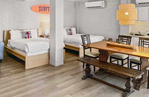 Cayo Collado is a studio apartment with 2 queen size beds & 1 fullbed. All beds are located in the open concept studio. The studio features full A/C and black-out shades.