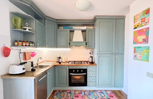 - a fully equipped kitchen with all necessary amenities including, in addition to various utensils, cutlery and cookware, a Nespresso coffee mashine with capsules, kettle, toaster, oven, refrigerator and freezer.