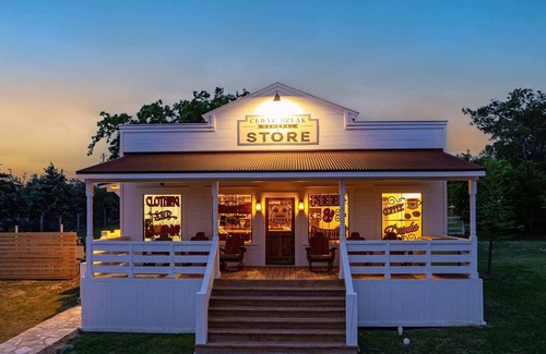 Discover the enchanting Cedar Break at Howard Ranch - a truly one-of-a-kind boutique lodging and event venue nestled in the picturesque Texas Hill Country. Our sprawling 15-acre property offers a range of lodging options, including artisanally-decorated cabins, National Park-themed Airstream trailers, and a replica elevated timber frame grain barn boasting three luxuriously appointed suites, plus a private vintage western saloon. For Airstream enthusiasts, our Airstream RV Resort offers full hook-up systems, Adirondack chairs, and cowboy-cooker fire pits. Our enclosed pavilion is the perfect destination for special events, wedding rehearsal parties, or intimate wedding receptions. With live music events, open-air shopping, and delicious craft beer and bites from the famous Twisted X Brewery and Tasting Room, you'll find plenty to keep you entertained on-site.