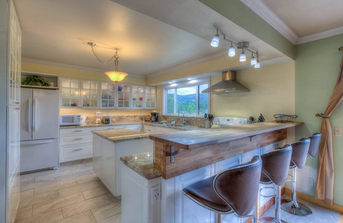 The wraparound deck has spectacular views. A newly-renovated kitchen with bar counter is perfect for hosting. The Weber grill on the covered patio makes barbecuing fun and easy.