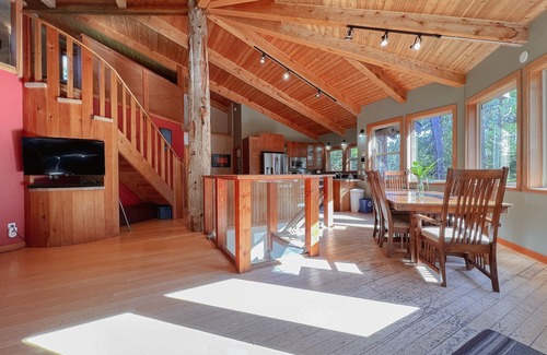 Gather around the outdoor fire pit, where the kids can enjoy roasting marshmallows while the adults unwind and soak in the joy of quality family time. Relax in the newly added wood barrel sauna — perfect after a day of exploring Tofino and all it has to offer. After a surf session, rinse off in the outdoor shower, or use it as a refreshing cold plunge between sauna rounds. Upstairs, the deck features a hot tub and a comfortable seating area, ideal for extra relaxation or entertaining under the stars. There is so much to see and do on the West Coast of Vancouver Island - make this house your base camp for your next adventure!