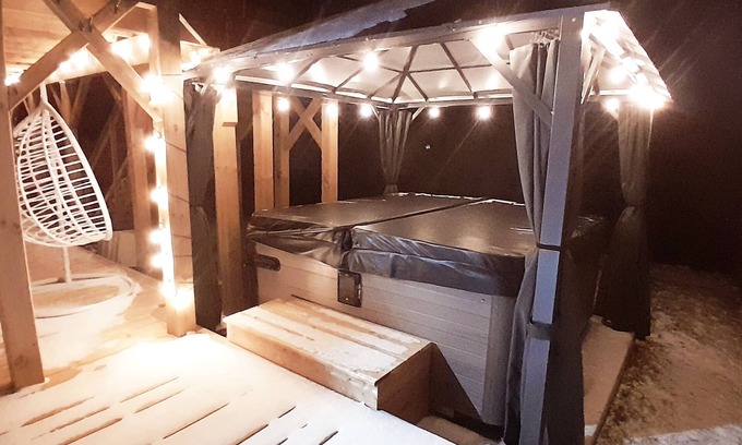 Although, the hot tub is shared with the other apartment. It will be private to you when in use. To guarantee your privacy, the hot tub is covered with a gazebo that has privacy curtains.