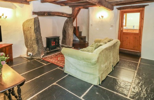 A 17th century stone built cottage, in a quiet location adjoining the owners' home and set in four acres of garden and woodland just three miles from the little village of Tremadog.