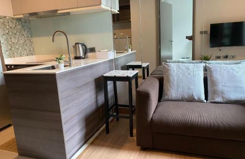 Ceil by Sansiri BTS Ekamai Shuttle to BTS Ekamai, Gateway mall, Major Cineplex mid city. Great place to explore bangkok offers accommodations in Bangkok, 1.9 miles from Emporium Shopping Mall and 3.8 miles from Central Embassy. Guests may go for a swim in the private pool. Queen Sirikit National Convention Center is 3.8 miles from the apartment and Amarin Plaza is 4.1 miles away. With direct access to a balcony with garden views, the air-conditioned apartment consists of 1 bedroom and a fully equipped kitchen. A flat-screen TV is featured. The accommodation is non-smoking. Guests can also relax in the garden. Central World Plaza is 4.3 miles from the apartment, while Gaysorn Village Shopping Mall is 4.4 miles away. Suvarnabhumi Airport is 17 miles from the property.