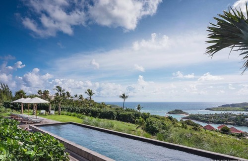 Villa Celadon is a prestigious property in St Barths with a breathtaking view over the bay of Grand Cul de Sac and Petit Cul de Sac. Ideally located in the private Mont-Jean estate, this large five-bedroom air-conditioned vacation rental house offers upscale amenities that will make your stay an unforgettable interlude in the Caribbean.