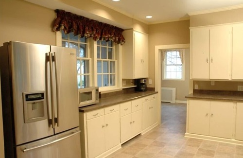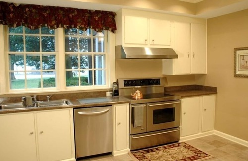 Inside on the first floor you'll find a butler's kitchen and main kitchen with lots of cabinets and top of the line stainless appliances. Next to the kitchen is the large laundry room with two front load washers and dryers and an additional dishwasher. You can enjoy your breakfast in our sunroom that has a gorgeous view of the Chester River. You can have a large dinner party in the dining room and talk about the enormous crystal chandelier overhead.