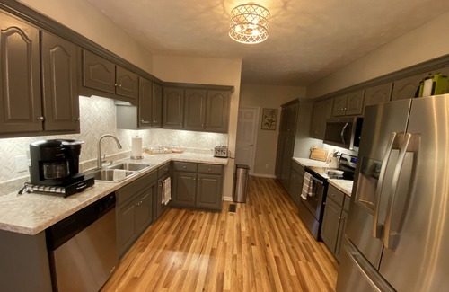 This 2040 sq ft ranch home is located on a nearly 2 acres wooded lot, in a small and quiet sub-division, on the edge of Smithville, TN. Only a 10 min. drive to Center Hill Lake. The European owners had this home fully updated with your comfort in mind. Almost everything in this home is brand new. Kick back and relax on the LARGE comfortable la-z-boy sofa in the spacious living room or enjoy meals with your family and friends at the large dinner table. Plenty of outdoor space with a large covered, partly screened-in porch including a gas grill available for your use. The home also features a backyard play-set for the little ones, picnic tables and a gas fire pit. Summer Ridge Villa will be fully decorated during the Christmas season. The closest marina (Hidden Harbor) is only 10 min. away, so no problem if you would like to bring your boat along, there is plenty of space to park it at the house. Holmes creek recreational area (6.4 miles) has a free boat ramp and is popular for those wanting to swim in the lake.