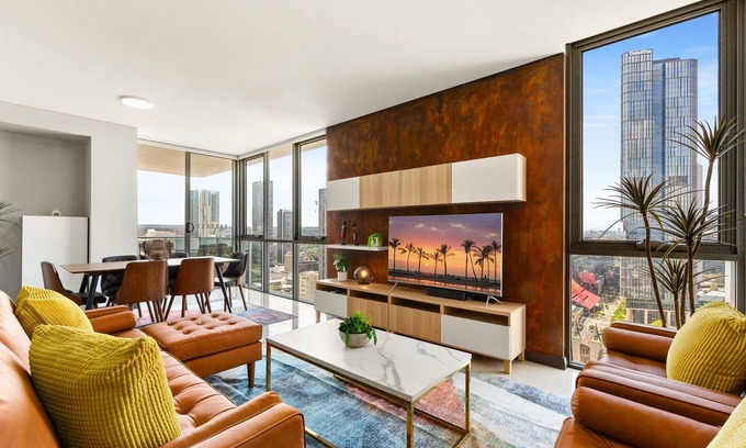 Experience the versatility of cosmopolitan Parramatta in this stunning 2-bed apartment showcasing outstanding views, incredible location and lots of natural light. Located mere steps from the picturesque Parramatta Park, you'll also be a short walk to Rumsey Rose Gardens, shops, public transport, and more. Featuring spacious interiors, sophisticated furnishings, modern amenities, and the added convenience of self-check-in, this home can be the perfect base for your Sydney visit.