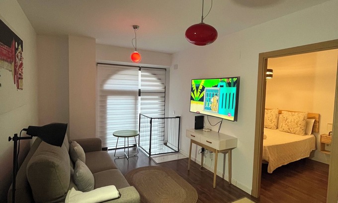 The apartment consists of 1 room with a 1.50*2.00 bed with a built-in wardrobe. A living room with a 1.40*2.00 sofa bed with a 55" TV. Bathroom and fully equipped independent kitchen.