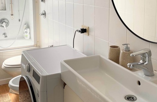 In the bathroom, you’ll find a Samsung washer/dryer, along with shampoo, hair conditioner, shower gel, and towels for your face and body. The wardrobe is stocked with a hairdryer, iron, hangers, and a small ironing board to keep you looking your best during your stay.