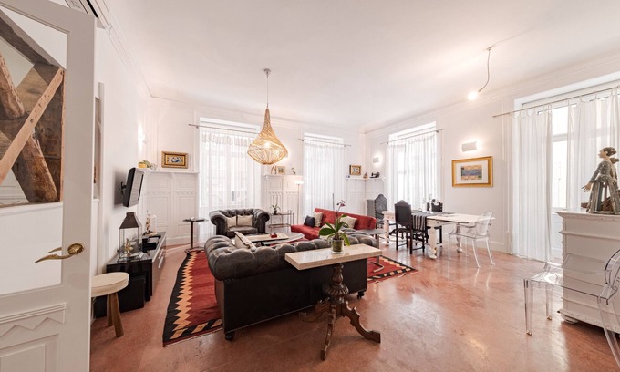 Charming fully renovated apartment located in a lovely area in the city center of Baixa, Lisbon, with 120 m², tastefully furnished, fully equipped, with capacity for 5 people.