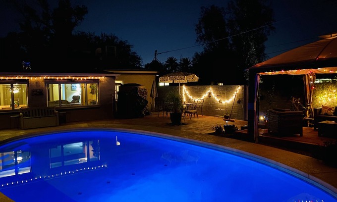 Newly purchased for our VRBO inventory we have opened this Tucson Central Gem. Great walking area with sidewalks and mini library book boxes. We are currently and have been five star Hosts on all our properties and know how to treat you. The Saltillo tile gives the home that cool, comfortable Spanish flare. There is a pellet stove for the cold nights and for the warm nights, cool off in the pool. Enjoy the large bay windows looking out to the pool area. Fun to be had, just needs you.