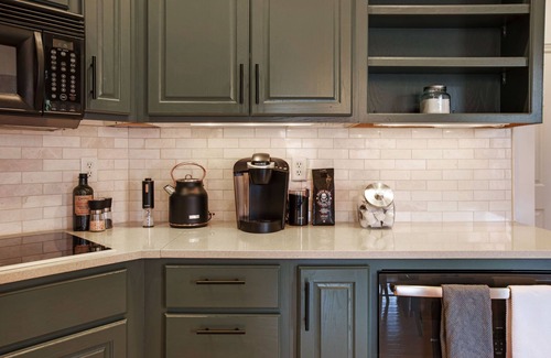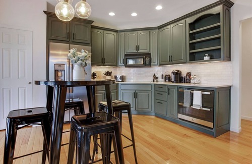 The large main level living room with fireplace creates a cozy and elegant environment during your stay. The dining room features a custom made table that is perfect for entertaining and making memories around. The large main level kitchen is equipped with all the stuff one needs to create delicious meals during your stay.