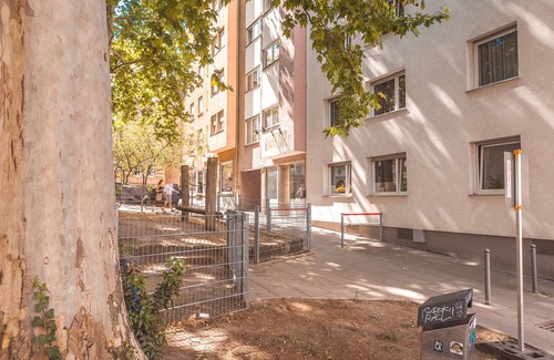 The apartment is based on the second floor (in Germany we'd call it first floor), reachable by elevator or just a couple of steps. The kitchen is fully equipped and the balcony is quiet, facing towards the court in the back.