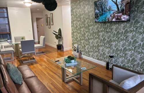 Get ready to relax in this 2-bedroom apartment in New York. This enchanting property features 1 king bed, 1 queen bed, a cozy living room with a futon, and a bathroom with a shower and bathtub. With amenities like heating, AC, an iron, and a hairdryer, guests will have everything they need for a wonderful stay. You're sure to make fantastic memories with a stay at our place.