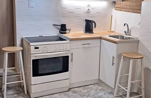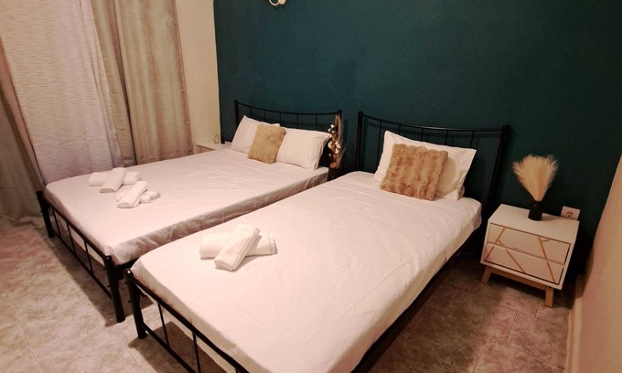 It's a brilliant, airy and comfortable one level apartment. It also has a fully equipped kitchen with all the necessities connected with a big living room that has a sofa, and a bathroom/toilet At last the apartment consists of one big bedroom with a double bed and a semi-double bed. Specifically some of house's facilities: * Fully equipped kitchen (filter coffee maker, toaster, oven, refrigerator, kettle and all the kitchen items such as plates, saucepans, cups, glasses etc.) *Smart Tv * Wi-fi * Heating independency * Air condition * Hairdryer * Hot water * Sheets, towels and blankets * Iron