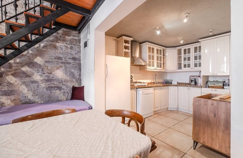 Central Stone Loft - 2 mins Beach - 5 mins Marina is located in Ayvalik City Center. Central Stone Loft - 2 mins Beach - 5 mins Marina provides accommodation, featuring Bedding/Linens, Wellness Facilities, Fireplace/Heating, among other amenities. This House features Bedding/Linens, Wellness Facilities, Fireplace/Heating, to make your stay a comfortable one.