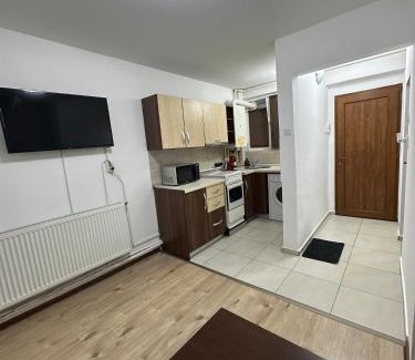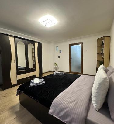 Both free Wifi and parking on-site are available at Central Studio free of charge. The accommodation provides airport transfers, while a car rental service is also available. Providing a balcony and quiet street views, the apartment includes 1 bedroom, a living room, satellite flat-screen TV, an equipped kitchen, and 1 bathroom with a walk-in shower. Towels and bed linen are provided in the apartment. A mini-market is available at the apartment. Craiova International Airport is 72 miles away.