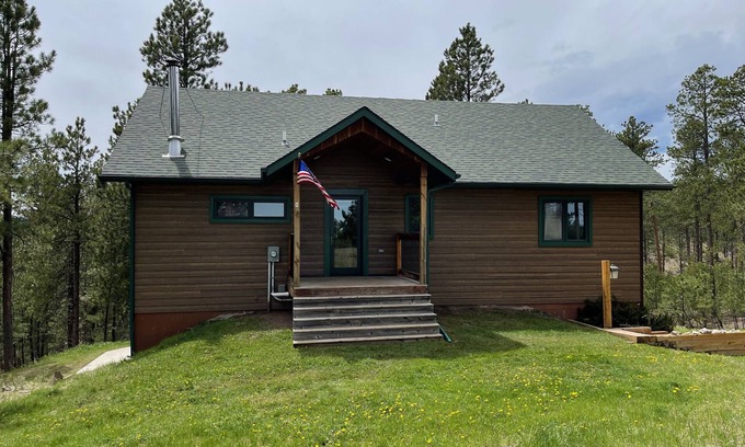 Come stay at this comfortable 3 bedroom cabin in the center of the Black Hills of South Dakota. Relax on the deck and take in the stunning view. It is located near the Sturgis motorcycle rally and historic Deadwood, where you can partake in fine dining or even a little gambling. It is also located within 25 miles of a wide variety of activities, from summer tourist attractions to winter activities throughout the Hills.