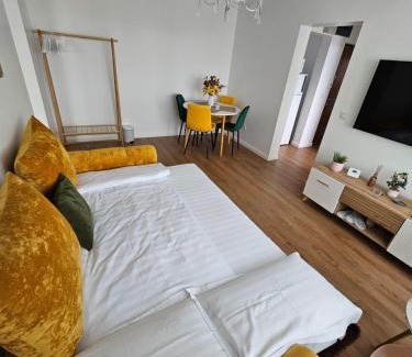 Both free Wifi and parking on-site are accessible at Central Viva Apartment free of charge. The air-conditioned apartment consists of 1 bedroom, a living room, a fully equipped kitchen with a microwave and a coffee machine, and 1 bathroom with a walk-in shower and slippers. Towels and bed linen are available in the apartment. This apartment is non-smoking and soundproof. Mihail Kogălniceanu International Airport is 100 miles from the property.
