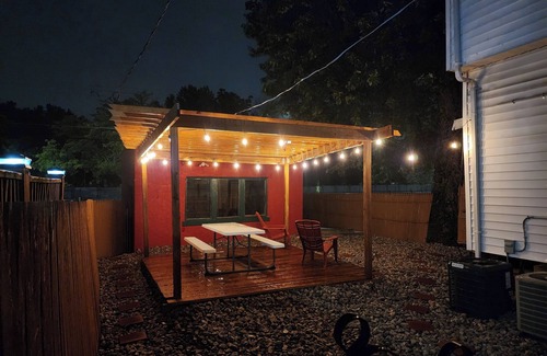 Historic five-bedroom property in central location in the Skinker DeBaliviere neighborhood!! This neighborhood truly is a walkable area as you are two blocks from Forest Park, 2 blocks from Washington University, three or four blocks from the Delmar loop with all the restaurants, coffee shops, and nightlife attractions!!! There is even a Starbucks at the end of the block!! The property itself has been nicely remodeled with refinished hardwood floors, fresh paint, updated bathrooms, the main level has a new electric fireplace, 65-in mounted television, & all new furniture. The 2nd floor contains all five bedrooms. ( please note the 4th & 5th bedroom are tandem so you must walk through the 4th bedroom to get into 5th bedroom) Each bedroom has a full bed, mini fridge, mounted television, & chair. The 2nd floor has a full bathroom and one of the bedrooms has its own private half bath. The 1st floor contains a large living room, dining room, kitchen, and additional kitchen room with 2 refrigerators, and a 1/2 bathroom. The lower level has been finished with a Full Bathroom, another large screen TV with seating, couch, and gaming monitor. Lower level also contains the laundry room which has two full sized washer and dryers. The backyard has a 6-ft tall privacy fence giving you complete privacy, a large gazebo/ deck with furniture for seating and gas grill for cook outs!! There is 1 car garage for parking and an additional one car parking pad.