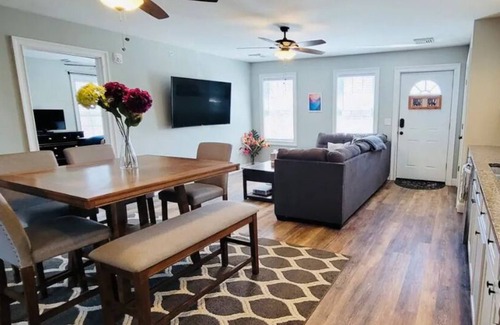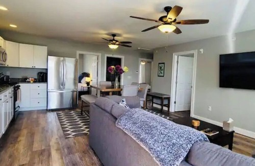 Newly constructed in 2018 this 1050 sqft space provides plenty of room for your group. Our second-floor apartment is centrally located in the mid-Broadway commercial district with easy access to historic sites, great restaurants, and local shops. Walk or take a quick drive to popular spots on Broadway Street and Liberty Street or get easily to neighboring towns and even West Point.