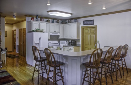 Beauty, relaxation, and joy are a few of the sensations you will experience during a rendezvous at Hot Springs’ premier lakefront vacation property. This beautiful lake home is located minutes from Central Avenue and seconds from the cool waters of Lake Hamilton. All you have to do is walk out the back door. This lake house is great for any occasion, including a romantic couples retreat or a fun family vacation. The two-story Williamson Lake Estate features four stylish bedrooms and three-and-a-half bathrooms, and comfortably sleeps eight people. Each room is decorated in an exquisite and modern style. Plentiful windows and decks allow picturesque views. Decks surround two sides of the house to overlook the lake and garden vistas. The lake estate has a private and secluded feel that guides the way to relaxation and peace, while allowing ample opportunities for fun and entertainment. A large boat dock, swim platforms, and a newly added boardwalk provide many options for lake activities, including fishing. The swimming area is located in a quiet cove, and has a pebble-covered lake floor to enhance the swimming experience. Other features include dual master suites, Jacuzzi tub, two living room areas, seven-seat breakfast bar, picnic area, a covered boat slip, and gorgeous landscaping. Everything you need to live life to the fullest during your vacation can be found at Serenity Escape! A great place to stay is the foundation of a great vacation.