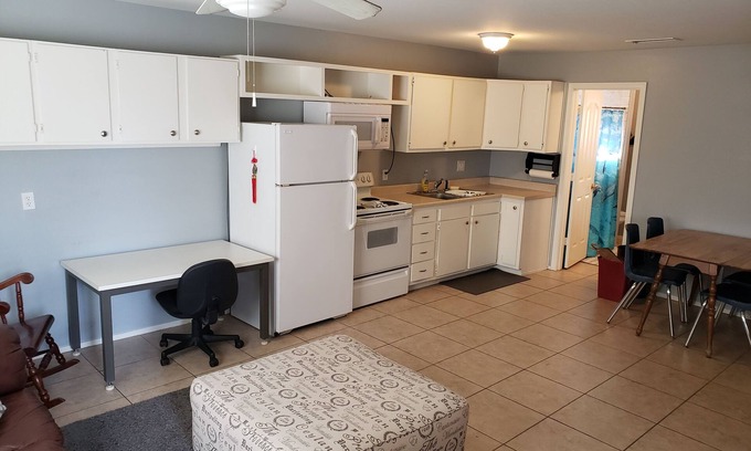 Relax and unwind within 5 minutes to the Oakland Athletics Hohokam Stadium and 10 minutes to the Cubs Stadium and downtown Mesa AZ. Phoenix Sky Harbor Airport is only 15 minutes away. This studio has a kitchen, bath and your own laundry and lots of storage for longer term guests. Queen and a new self inflating air bed available. Easy keyless entry.