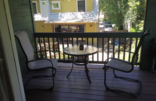 The Treehouse Studio is the second (top) floor of a freestanding building behind our house in French Place, providing plenty of privacy. Within a 15-20 minute walk to the Moody Center, the Bass Concert Hall, St. Davids Hospital, the UT sports complex and the University of Texas campus, you can avoid (the sometimes horrendous) event traffic and parking fees. The neighborhood also has many great restaurants, bars, coffee shops and even a fringy theater company, all within a few minutes walk.
